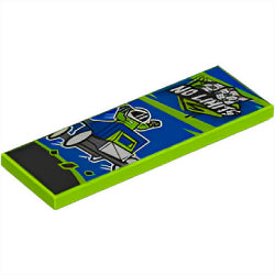 レゴプリントタイル2×6のNOLIMITSバナーとソープボックスダービーの黄緑色です。